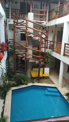 I booked this hotel at the last minute when the booking I had made well in advance ended up being fraudulent. I chose it because it was very close to the Super Aki and the main road. It was easy to find but from the outside it did not look like a hotel but more like a restaurant. You have to actually go through the restaurant to find the reception desk. Jose at the front desk greeted me which such kindness. I got a room on the second floor close to the back, away from Coba avenue. The hotel is really pretty a colourful with colourful art work adorning the walls and a cute pool in the middle of the hotel that I did not get a chance to use. The room was cute and very clean. I had two double beds and a small table . There was also a fridge with glasses. The bed was comfortable and the bed sheets and pillow smelled nice. The lighting in the room however was very low . The fridge did not work very well and didn't cool off my water. The shower had low pressure but the water was nice and hot. Unfortunately I had one if the worse nights ever staying at this hotel. There was super loud club music that only stopped at 4 m. Also, the dogs in the neighbourhood were out of controls and barked non stop all through the night and day. To add insult to injury the cleaning staff were super loud and talked in front of my room preventing me to sleep a little more in the morning. They had a gift shop boutique and their own restaurant. My room rate included breakfast which was good. I had chilaquile verde con huevos which tasted good . I had lunch there as well which consisted of pescado Fritos con Arizona y verduras ( fried whole fish with veggies and rice. I was a little taken back when I was charged 60 pesos for a tiny glass of on that was less than 125ml! The waitress was really cold with me but then again that may be because I forgot to tip her! So I left the place the next day exhausted and having only slept 2 hours due to the noise. I booked a different place in a quieter area where I was...