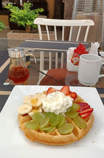 The staff are all pleasant but most speak little or no English. It looked like the hotel caters to regional visitors as the breakfast menu is only in Spanish. We thought the breakfast (included in the price) was not a very good quality. The fruit plate was delivered immediately and clearly sliced some time before. The cooked offerings were pretty uninspired and the “specialties”, which cost an additional 50 pesos (about US$2.50), weren’t much better. The placemats and chair cushions are dirty/stained. Coffee is help yourself from a thermos and the pancake syrup didn’t taste of real maple syrup. We took our breakfast out half the time.