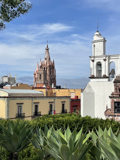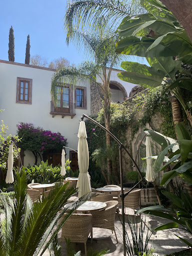 Read moreSuperb butique hotel in the heart of the tiny gem of a town San Miguel de Allende. ||OUR ROOM: increadible old fashioned dwelling with thick walls, giant glass door, and wood beam 8 meter tall (~26.24 feet !) ceiling. A spectacular bathroom is half the size of the dwellibg and features modern multihead shower, marble sinks, a lovely retro-style bathtub, and a skylight. Waist high king size bed comes with two obligatory foot stools.||STAFF: friendly, competent, and attentive to guests needs.||FOOD: |(1) a superb rooftop restaurant ("Fatima 7") serves fusion Mexican/No.African cuisine (personal suggestion: rack of lamb. )|(2) patio eating area adjacent to the bar. Breakfast served 8-11 a.m. (PLEASE NOTE: this is not "continental breakfast, " the one often encounters in the U.S. Here it takes 1+ hours to be serviced, so make sure you take that into account when planning your itinerary. ) Breakfast food and selection of coffees is excellent. Although the price of breakfast is INCLUDED, PLEASE DO NOT FORGER TO TIP the serving staff. Personal favorites: Mexican omlet with black beans and green salsa (spicy), bowl of fresh fruit (locally grown mangos and papaya are picked ripe and taste like nothing we can find back home), quesadillas, and avocado toast (toasted bread with slices of fresh avocado and locally farmed mushrooms.)||OTHER: two small and cool inner courtyards with fountains offer a perfect place to spend a few hours with a book, while the afternoon heat winds down outside.| For desperate shopaholics: there is a small and tasteful boutique at the front part of the building. It offers a small selection of clothes, shoes, and jewelry. ||COST: a bit pricey, but well worth it. ||OVER ALL: we had a very pleasant stay and will be glad to come back. Sincerely recommend to visitors...