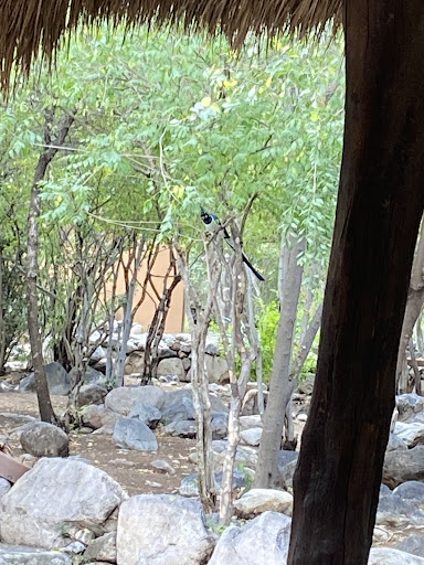 El Pedregal is a delightful eco casita lodge, one mile southwest of Alamos, Mexico. ||We were an 11-person birding group, which filled the entire nature lodge. We had all received our vaccination shots and wanted to travel but continue to be safe. This facility, with its beautifully appointed but separate adobe casitas, was ideal. In addition, all of our on-site meals were served outdoors on the porch or under the spacious palapa. ||Some of our best bird sightings were right on the grounds near the palapa. The MacKays and their staff replenish the ingeniously constructed feeders that attract Blackthroated Magpie-Jays, Hooded and Streak-backed Orioles, Hummingbirds, Varied Buntings, Woodpeckers, Chachalacas, and more. There was nothing better than beginning the day with a hot cup of coffee only a few feet away from incredible birds arriving for the water and feed just beyond the palapa...unless it is sipping a Margarita while watching the afternoon and evening arrivals. After dark, the Western Screech Owls and Nightjars continue the chorus. ||One of the advantages of El Pedregal and this location at the southern edge of the Sonoran Desert and the beginning of the deciduous Sierra Madre bio-zone is that the night skies are very dark. It was a delight to lay on a lounger by the pool at 2:00 A.M. and look into the Milky Way. ||El Pedregal feels remote, but it is an easy walk to services. I enjoyed morning walks as dawn broke over the village. I kept searching for a place to have coffee along the way but found none near the Plaza Alameda. Fortunately, the morning traffic led me to the Pemex station on the western edge of town. A helpful Policia Municipal showed me the espresso machine among the displays. Remember, PemexOxxo is the place to find a decent espresso in Alamos as the sun comes up. ||Alamos is a small community with plenty of surprises. It is THE place to listen to Alfonso Ortiz Tirado's beautiful tenor voice. He also happened to be Frida Kahlo's physician in the years around the Revolution. Although our visit didn't coincide with the music festival held in January of each year, we peeked at the main opera venue: the Municipal Government Office Building. It is a red brick building with an interior concert hall with offices located around the perimeter. The Plaza and its adjacent businesses and shops are open in the morning and later in the afternoon and early evening. ||El Pedregal is part of the fabric of Alamos. The MacKay’s have lived and raised their family there for over twenty years. They have played a part in building a crafts cooperative to continue Sonoran textile skills and help women enter the pueblo magico economy. Knowing that many restaurants have suffered this past year, they arranged for meals in downtown restaurants and at the Lodge. On Taco Tuesday, a family business arrived to make us dinner. They proved what we had previously only known to be a rumor. It turns out that Sonoran tacos really are the very best!!!||Alamos is well worth a visit. The key, though, is to stay at the El Pedregal Nature Reserve. At night it is tranquil, much quieter than the town. ||The MacKays and their staff provide attentive, excellent service. They and the natural preserve they have created adjacent to the Parque La Colorada are a delight. We will not soon forget the good times we had at El Pedregal Hotel en...