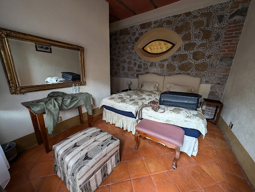Read moreWe were the only ones staying the first night there and while there is no food at night, nor easy accessibility to a local restaurant we had a wonderful night with a fire going in the fireplace, a beautiful room, and bottle of mezcal donated by the office Manager. This property is unique, not for everybody, but it is in a beautiful old Hacienda, partially restored, that is a treat for an artist, photographer, writer, or anyone looking for tranquility and or a spot to be creative. The breakfast was delicious, and everyone was very nice- no English spoken when we were there. We will...