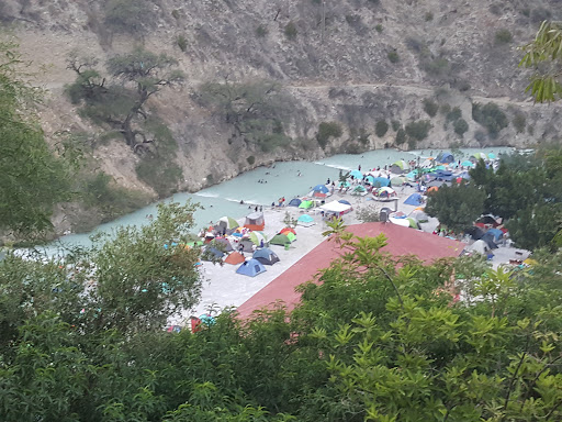 This 36 degree Celsius hot river is a world class experience, we enjoyed this site for three days, on a busy weekend, without a car. The restaurants serve average Mexican food. Bring water shoes.