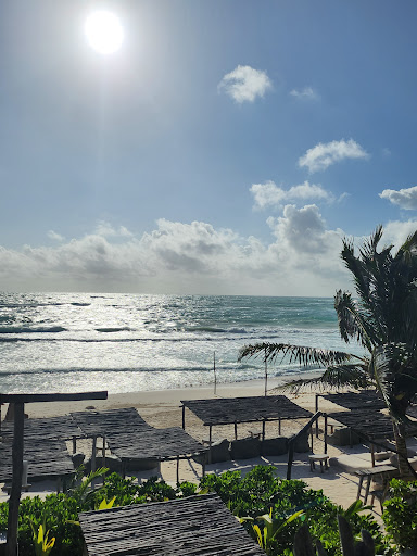 The food started arriving, and it was really delicious. We were fairly stuffed when the "Fish Platter" arrived at last. It was a collection of four shrimps cooked in butter and so salty than no one could eat them, a medium size portion of grilled beef that was a bit dry, two chicken breasts, also grilled and dry, and some grilled octopus (ok, not great). We joked that it was the worst tasting thing we had eaten during our entire stay in Tulum, but felt fine leaving most of it untouched as everything else was tasty and we were stuffed.