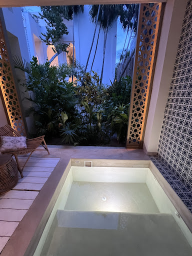 Beautiful boutique hotel nestled on the Tulum beachfront. Went spent three glorious nights there and had a fantastic time. The service was amazing! Nothing we asked for went unanswered. |First day we were in a second floor room with a garden view, lovely balcony with wooden lounging chairs. However due to my SO’s bad back we requested a first floor room as there is no elevator and he had a hard time with the stairs. They graciously accommodated us the next day. The second room was identical with the exception of a plunge pool… very nice. |We only made it to the beach club the first day. The lounge beds were cozy and they provide towels there. Now the water did not look prone for swimming nor it did we see any access to water activities, however, I am certain the front desk staff could provide information on where all of those activities are located if that’s what you’re interested in doing. We wanted lazy days lounging around and this place was perfect for us. |A couple of important pieces that I want to note that I found nowhere in reviews prior to our visit.|1. The hotel is Moroccan themed thus the menu items are Mediterranean. There is NO pork on the menu, thus don’t expect bacon or sausage or anything of the like on the menu. Additionally, the menu is fairly limited. We had the breakfast included with our room and each day had the bread plate, fruit platter and usually the fitness omelette or veggie omelette (both very good with cheese). One morning, I also had the avocado toast, but be forewarned it comes with arugula. Do not expect any chilaquiles or rice and beans or any pancakes or French toast….thats a no. For lunch or dinner the lamb kabobs were good the margarita pizza was good as well as truffle fries. There is no traditional Mexican dishes either on their menu. |2. Transportation - getting around is EXPENSIVE! Anytime you enter a taxi expect a $30 US each way. And that’s just up and down the beach. We went to dinner at Casa Banana (which we highly recommend, it’s a Michelin Argentinian steak house), although it was just a mile from our hotel, $30 there and another $30 to return. |Also to get to the hotel from the airport, they will arrange transportation for you however the cost is either $130 per couple for a minivan or $160 per couple for a suburban. Again that is EACH WAY. So be certain to factor those costs into your travel budget. |Additionally, I considered renting a car before we travelled, however could not locate any rental companies on Hotwire or elsewhere. But upon arrival we met our driver in front of Avis rental car. So perhaps explore the cost of renting a car and parking at the hotel and various hotels/ restaurants along the beach. |3. There are tvs! Apparently televisions are not a common amenity on the Tulum beachfront. Here each from came equipped they also have access to Netflix, YouTube and Prime, all came in handy when we were rained in. You may also want to consider bringing a good book or a few games because that same afternoon of the thunderstorm, the power went out and we were without internet for a good portion of the day. However, we thoroughly enjoyed the time disconnected from the rest of the world. |All in all a great place with a very accommodating staff. Joss at the front desk is AMAZING!! He provided some wonderful recommendations for dinner. Casa Banana and La Zebra were both incredible. Do try them during your stay. |Sana boutique hotel was wonderful and I would...