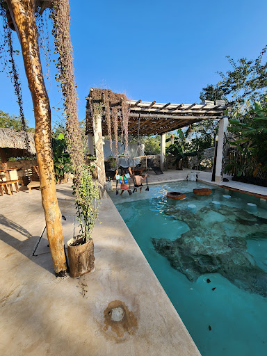 We had a fun, relaxing afternoon and evening here. Due to poor internet signal while on our road trip I had been unable to make a reservation although I had seen it listed on Booking.com. We drove here anyway hoping they'd have a room, and we got a great one - fabulous terrace with view, big room, friendly service. It's a whimsical place with humorous statues and unusual artwork. The pool was beautifully designed and had a sculpture at the bottom of the deep end, and swings above water at the shallow end. I wish we could have stayed another night, just to chill out and enjoy the property. Staying there also included a visit to a small enclosed cenote that was less than 10 minutes away walking. It was a bit creepy to be the only people climbing into the dark cave cenote, but the water was warmer than most, and super refreshing after a long day...