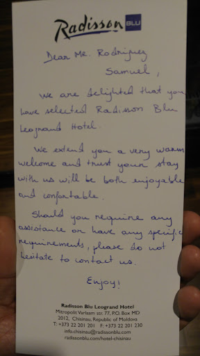 Read moreI've stayed at the Radisson several times on and off over the past two years when visiting Moldova for work – including for several long multi-week stays. Every stay has been wonderful and the Radisson continues to be my preferred hotel for my trips. Conveniently situated in the heart of Chișinău, the hotel is walking distance from excellent restaurants, cafes, shops, and parks. The hotel itself is impeccably clean and comfortable, with cozy and well-equipped rooms with extensive amenities. I loved the gym and spa area, both of which were clean and well-stocked with towels and other items. The breakfast buffet is extensive with a wide range of hot and cold items, including delicious traditional Moldovan dishes. I also appreciated the in-house restaurants and room service options, as well as the delightful wine shop featuring an excellent selection of local Moldovan wines.
