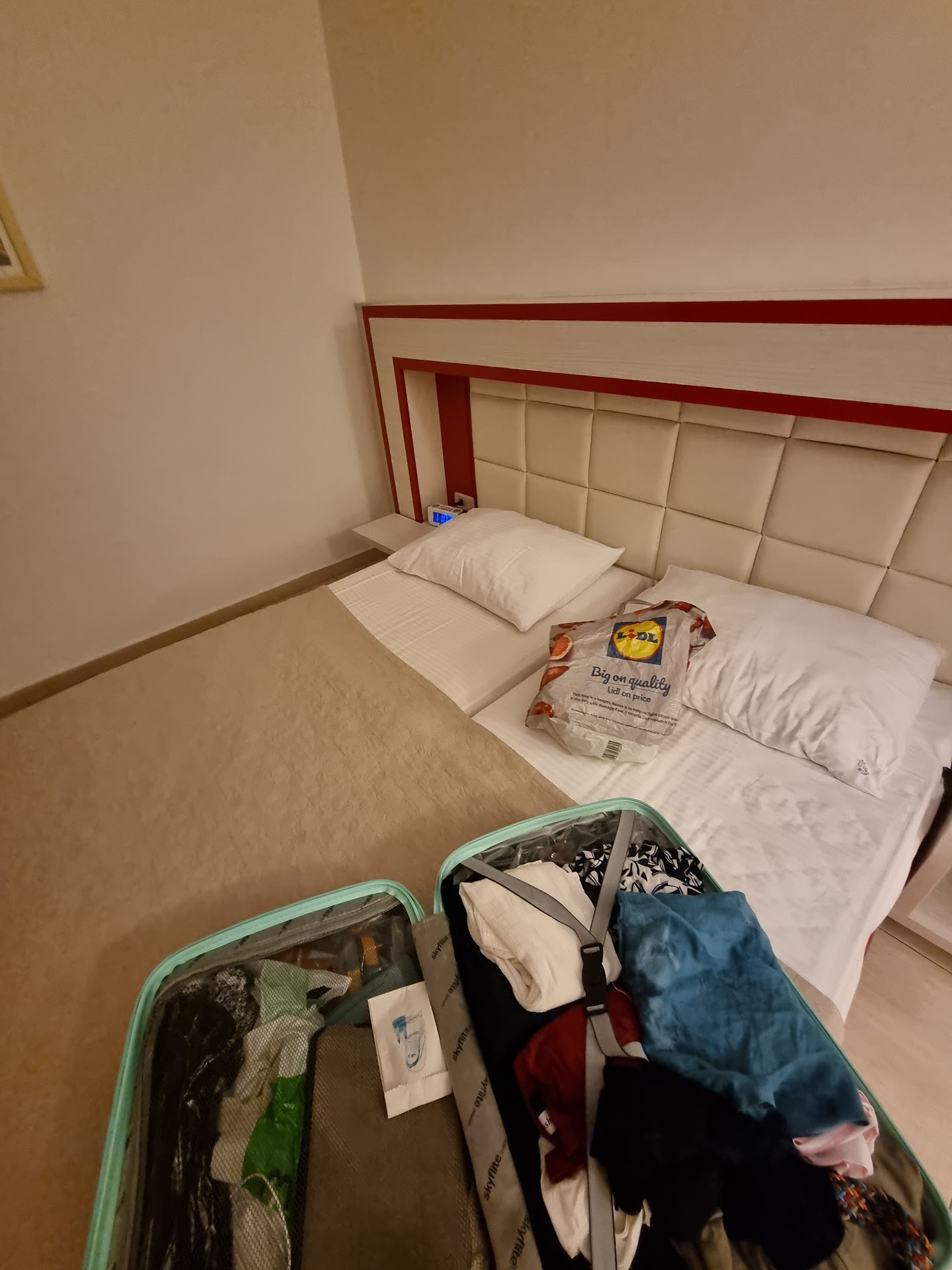 Some more bad things: you can only ask for late checkout the morning of your checkout, for me defeating the purpose of a late checkout. Not one staff member has shown any enthusiasm or good will towards me here. Staff does not speak good english or russian, seems like only serbian. Entertainment is for serbian speaking customers only. The bathroom floor tiles are not angled in the correct way, causing the entire bathroom floor to flood each time you shower. You can not lie down with the poolchairs they have here, only a 45 degree angle. We put out a sign to clean the room, nobody cleaned. We put up 2 signs to not disturb, but someone came in, changed the towels and rearranged the curtains. There is about a 2cm gap under the door to your room, all sounds can be heard both ways. The floor was not clean when we arrived, and today on day 7 it has still not been cleaned. One side of our bed is balanced in the middle, causing a knocking sound to occur every time you change your sleeping position. There are people on mopeds and e-scooters constantly speeding around the hotel territory. The hotel does not have its own beach and the beach nearby is full of trash...
