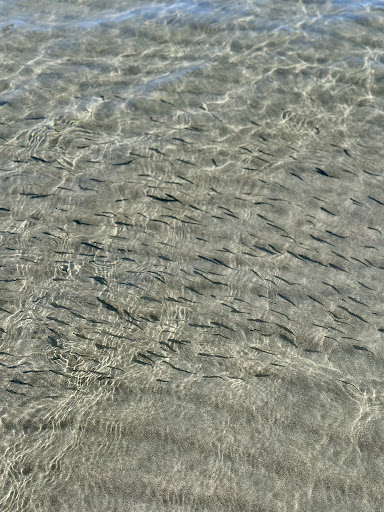 Der Strand ist ca. 20m vom Campingplatz entfernt. Badegäste aus dem Ort belegen viele der zu mietenden beschatteten Strandliegen. Kosten hierfür zum Zeitpunkt unseres Aufenthaltes: 12,00 EUR/ Tag für 1 Sonnenschirm und 2 Liegen.