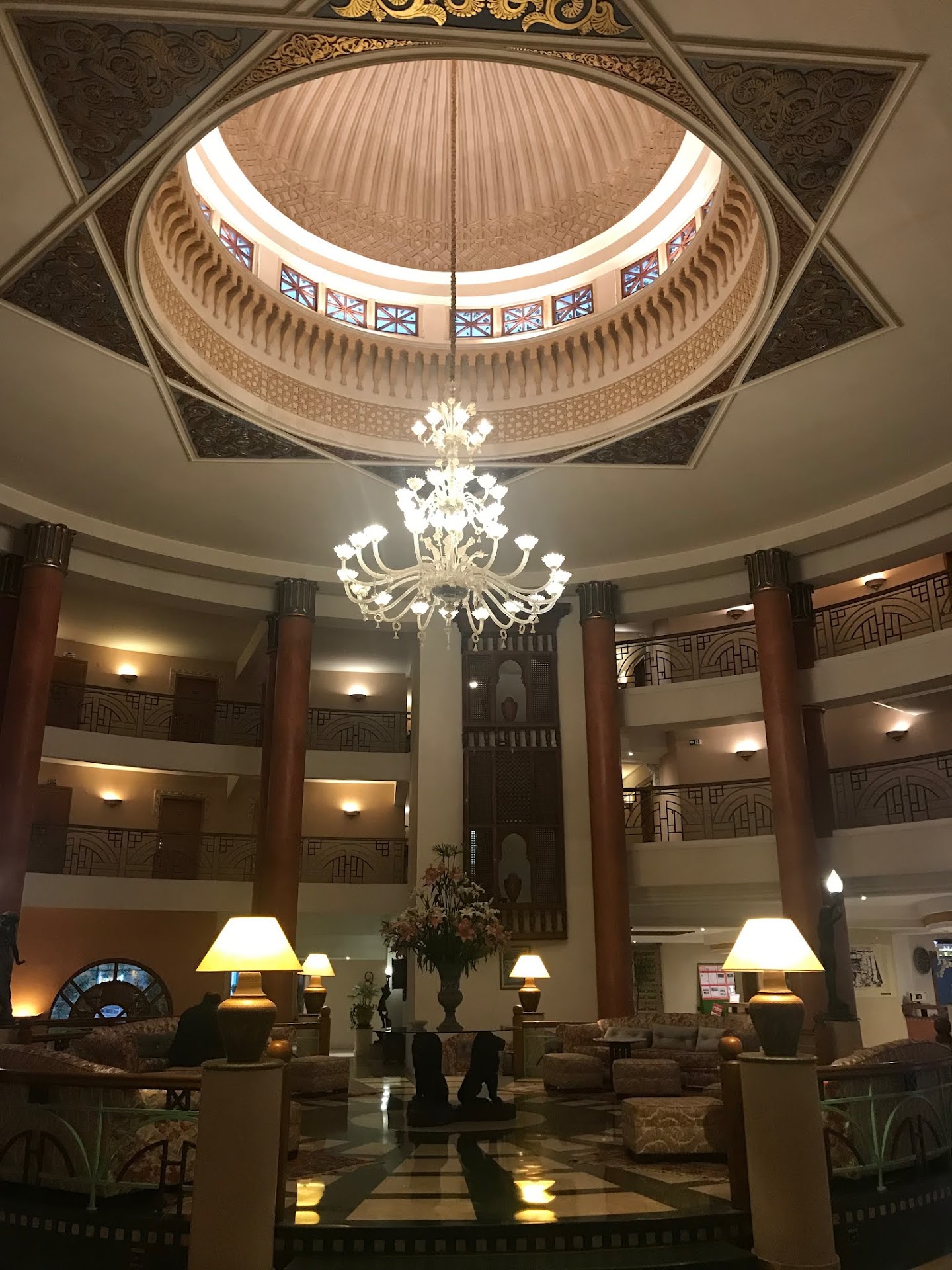 Read moreI'm writing backwards, doing the 'cons' first - but there are many good points too!|This hotel is not 'all inclusive' as we know it! |There are no coffee/tea making facilities in the rooms. If you wake early you can't get a coffee unless at an extra cost at room-service.|NO water provided in room - although you can pick up from the bars/restaurants, it should be stocked in the room - there is a fridge, I'd expect water in it.|If you want any other cocktail than a mojito you will be disappointed! Very limited drink options without extra costs.|No snacks/ice cream etc available.|Limited signage and hotel is very confusing to navigate if your away from the pool or reception. (we were lost on a few occasions lol... even made it to the staff kitchen area by accident!) |Evening entertainment is the same every night, different songs maybe, but same singer and keyboard chap - while good at their jobs, no real variety.|Pool bar (at the lunch restaurant) staff could be a little surly and very slow at times - felt like being an AI guest meant we were treated a little 'less' than if we were paying.|Evening buffet - although there was a good variety and hot - there was nothing outstanding. No drink service that we saw (maybe an all inclusive thing again..), consequently we ate out at night - added expense.......|Moroccan restaurant: VERY limited choice without paying supplemental payment - like 1 dish!!! only water or wine as a drink option. |Italian restaurant: As above VERY limited choice (1 dish!) without paying supplement, and only wine/water as an option - the on duty 'manager' also made a very inappropriate comment to my friend about her breasts - not once but TWICE... very uncomfortable experience so, having already ordered we left most of the meal and left. The whole experience was a little weird.||Good Bits:|Reception staff - very friendly and helpful on checking in/out - and nothing was a problem or too much trouble.|SPOTLESS! Hotel was very clean - (even the bits you usually don't see - [see above about getting lost :) ] ). Grounds are really nicely kept and looked after.|Animation staff!! Well!! Thank you guys - although we didn't take part, you all took time to stop and have a chat and laugh, and really took the time to see if we were enjoying our stay. Special mentions - Yaz, Omama and (I forgot your mane sorry) the other lady. (and sorry for the spelling too.) Good luck with all your future ventures!|Location is perfect for popping out in the evening, some really good restaurants very close.|Rooms, while a little dated they are spotlessly clean, and have almost everything you need; no water or tea/coffee. There is a fridge, I'd expect it to be stocked with water. Bed was comfortable, bathroom clean and bits and bobs provided. Balcony while small, adequate to sit and watch the sun go down. (cheap furniture though & would be tight if there were 2 of you)|Breakfast - GREAT! Everything anyone could want, eggs and Moroccan pancakes cooked to order, plenty of choice.|Lunch: - GREAT! plenty of variety, and different daily, with varying things cooked to order, and a selection of salads and carb options, attentive staff - quick to offer drinks (not just wine and water..) and clear plates. Overall the best place to eat in the hotel IMO. |Overall. We enjoyed our stay. This could be a fantastic choice, but it's not an 'all inclusive' hotel. 'Some' staff could be a little friendlier, and should provide water in the AI rooms! (add tea/coffee making...
