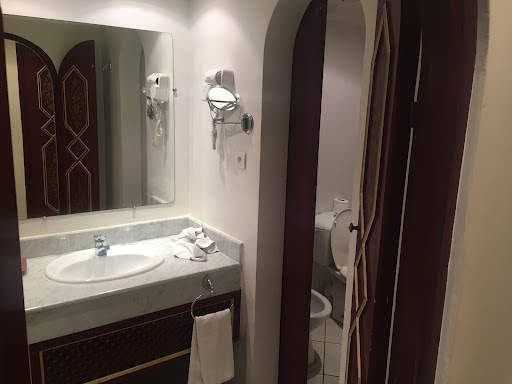 Fair price for very good location in the middle of the beach strip. Stayed in early July 17, room 414, nice large room with double bed and mod cons. Outdated but good for the price. They say all rooms have balconies.. This is a lie really, they have large floor to ceiling doors that open onto a hand rail. You cannot stand in it really let alone sit outside on the balcony, so don't book if you want an actual balcony. WiFi only useful in reception and some areas around the pool although it was slower there. No Wi-Fi in the rooms. There was a music festival on in agadir so it was loud at night, double glazing would have been good for the busy road noise below. We wore ear plugs. Pool was lovely although weird set up with the pool towels, they're hidden away under lock and key so you always have to ask to get one and I assume you're expected to tip the pool guy for the privilege of getting it for you. Also, a strange policy is that you can't bring drinks back into the hotel from the road back entrance (even a water bottle!) but you can if you walk through the reception entrance? Very bizarre but bottled water is very expensive at the hotel (3x normal price). We had bnb and we found breakfast plentiful with lots of lovely pastries. The hot bits were local style but at least they had hot options. We didn't eat lunch or dinner here with so many places out that were amazing and cheap like Daffys, Chichi kebab etc. Staff were very friendly towards us, despite our limited Arabic/French and welcoming including reception, cleaning, and waiting staff. Would recommend for a cheaper but ok quality stay, with a nice pool in a very good location 10 mins walk up from the beach, B&B...