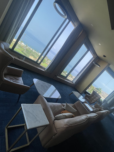 I must preface this review by saying that while planning our trip to Morocco, I had great difficulty deciding where to stay in Al Hoceima where we intended to take a short sea-side break on our road trip between Chefchaoune and Fez. The reviews on TA and in Rough Guide were not terribly enthusiastic about any particular hotel: all seemed pretty mediocre and none jumped out at me and said "Hello!" I had booked first at Suites Mohammed V, and then at Mercure Quemado, and changed my mind several times and finally settled on the Mira Palace (despite pictures of its horribly kitch, pitch-black granite clad, exterior, and talk of its being way out of the main town and beach areas - which it sadly is). It was not a bad choice, in itself, ignoring its somewhat sterile and alienated location, and it was very, very quiet. The hotel and the room itself were clean and spacious, with good aircon, cosmetics and linen, solid finishes but terrible lighting, and a highly slippery shower floor (both of which latter complaints are not uncommon in Morocco in general). There is every type and style of chair in the lobby, textures of every hue, a real décor cadenza, including a sofa on which one member of staff slept during the night and which I had to wake him up to allow us to leave! There is also a beautiful, blue, cold, large pool which I had all to myself. Of about 30 rooms in total, I believe there were only 1 or 2 other occupants on the 2 nights we spent there (early October 2017) - there was a feeling that we had arrived in some newly built, wealthy seaside town, which could have been anywhere in the world, out of season for some sort of business trip. The staff complement was reduced to a skeleton of 2 or 3; everything and everyone were rather slow and drowsy. We only had one breakfast (reason apparent in a minute), served in the empty dining room on the pool level: it is obviously buffet style, but because of the lack of guests, there was nothing at all laid out - we were surrounded by empty vessels, pots, platters and coffee jugs ... it felt like we were ghosts passing through ... and the coffee, now that I recall, was nothing short of putrid and tasted of over-boiled milk. The rest of the breakfast was poor - someone had taken, reluctantly, a few ailing cold meats and cheeses out of a fridge somewhere and aimed them at our table, where they settled disconsolately, as if by chance. The bread was fresh; that much I can say. Wirth so few guests, you just cannot serve breakfast in such a room. Make another plan. No one gave any of this any thought. We were simply numbers in a machine.||The view from the room, over the pool, a parking lot, some apartment blocks and finally, a distant bay of blue sea, was all right, but strangely alienating ... the whole place, being in the middle of a sort of up-market suburb, was sorely lacking in LIFE ... of which there is so much to see in Morocco in most other places.||We tried to go into the Suites Mohammed V to see what it looked like. From the outside it resembled a building for public administration or a sort of military academy, with police and soldiers milling around and guarding the entrance; no idea why. We were denied entry, and so, needless to say, if we ever return, we would not stay there. The best sandy beach is undoubtedly Quemodo itself, right in the town, on which we spent a pleasant morning, with stunningly clean blue water and excellent swimming (no waves, of course - I do not compare this to beaches in the southern hemisphere; I am talking by domestic European standards, as pathetic as they are); and the Mercure Quemado, although arrogantly built practically on the beach itself, is without doubt the best option for Al Hoceima: wisdom with hindsight as this may be. That is where I would stay if I visited the town again, which I probably would not, since once is enough, until I am very old ... That said, it was fine for what it was, I do not regret it, and the beach and the swim made it worthwhile, and there is some surprisingly dramatic natural beauty around the town which is also worth seeing. The main square of the town, just above the beach, is rather sterile, but the town itself busy and lively, with fresh sea breezes; there is no food in the town worth talking about (as far as we could find) except a fish restaurant, at not the cleanest of spots right inside the harbour, called Club Nautique which is well nigh impossible to find ... but persevere! We ate at the Basilico as well which was mediocre and quite over-priced.||So, all in all, Al Hoceima is very refreshing for a day or maybe two, but (unless you're there on business, perhaps or for a conference or something like that), the Mira Palace would not be my choice again. Reasonably priced at around E100 per night, for 2 pax, with the...