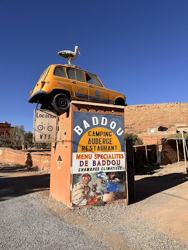 Auberge Baddou is an excellent hotel and offers much more than you would expect in this area. Spacious, clean rooms with heating, air conditioning, hot showers, TV and WiFi. Super tasty food and friendly staff round off the whole thing. The pool in a beautifully landscaped garden is clean and well-kept. Ahmed Abaz, the boss, also does guided tours in the area on request. There is a spacious area for mobile homes with their own clean sanitary facilities. Disposal, fresh water and electricity are not a problem. We have been coming here for over 20 years and have never been disappointed. This is the ORIGINAL Auberge Baddou, not in Assoul!!! Someone stole the name Baddou...