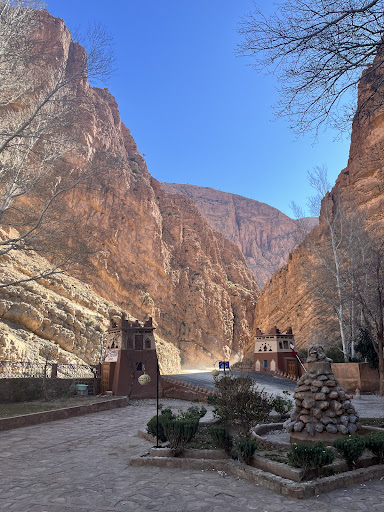 Hotel to de stress, a definite must do! Have just spent five days at this hotel. Arrived full of lifes stresses and left like a new woman. The owners are very perceptive to needs and nothing is too much for them, within their means. Stupendous night skies, not blighted with light. Great trekking and hiking with the manager Idriss whose knowledge about his surroundings is impressive. I would higly recommend this place to all. Breakfasts are served either in the restaurant, which is decked out in the Berbere style, comfortable and clean. the bedrooms have all you need down to a hairdryer, the bed are warm and comfortable and you can drift off to sleep listening to the birds sing. Yes, they sing all night......slightly confusing but another treat! the place is spotless and the people are exceptionally friendly, always smiling and helpful. There are beautiful shower washes left in the rooms for your use also, with the aromas of Morocco floating through them. The chefs chicken skewers are yummy and the food is fresh and not tainted with atrificial flavourings. I was introduce to green tea with wild mountain thyme by Idriss and it was refreshing as was his sense of humour. If you are looking for somewhere to totally unwind then I would highly recommend you pay this place a visit. Stunning view of the lowest point of the Dadas gorge, which is splendid in itself. First sight takes your breath away. Well appointed camping site with showers, toilets and washing machine facilites, all spotless. Safe for the solo traveller, with buses that will take you to the local town of Boumaine.....hope I spelt that right! They are very cheap to use, it costs 60 mad to go and take about half an hour, back through the Dadas gorge, a definite must see. Tucked away next to the river and the Gorge, you will be missing out if you don't give this Hotel and its glorious surroundings a try. No TVs, no noise and no hassle. I would definetly love to see the place again. A definite must do. Put it on your bucket list! You won't have to worry about speaking French or Moroccan as there is a fine English speaker there to help...