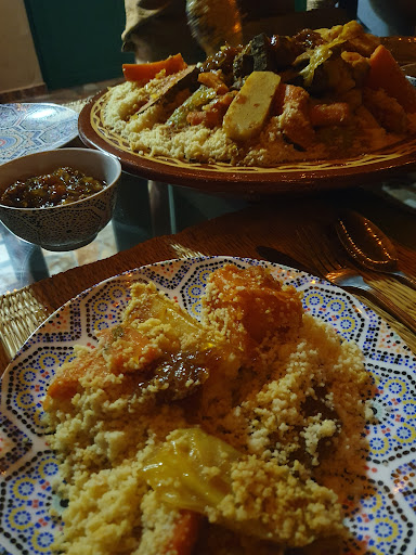 The breakfast is Moroccan style. I would consider it a little sparse with food, but that is a personal preference. An example of a breakfast would be: small omelet to share, bread, pancake, tea, coffee. For me personally, it is a little bit simple but maybe for others it’s enough. The dinners were also typical Moroccan dishes like tagine, couscous, etc.