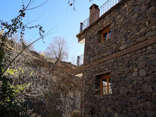 Read moreWe stayed five days in Hiba Lodge over New Year and enjoyed it very much indeed. ||||I was glad we were out of the bustle of Imlil (we came from Marrakech so were ready for some peace and clean air). Walking up from Tamatert rather than the bottom of the valley meant that we reached super viewpoints and lovely picnic areas more easily. We were happy to read on the sunny terrace most afternoons - you see a regular parade of sheep and goats from there as well as local people going about their business. If you don't have car, it's about a 30 minute walk to the centre of Imlil so in winter in the dark you are unlikely to venture out for dinner options. We were more than happy to eat Rachida's excellent food. It was different every night although she did make our favourite dessert again when we asked. Her chicken tagine was superb. There were also soups and various side dishes using lentils and vegetables - all great and served in large portions.||||The lodge is decorated in traditional Berber style. It's clean and comfortable. There were fresh tablecloths and napkins for every meal and our sheets and towels were changed after three days. The bed was incredibly comfortable and very warm.||||People have written about the cold. We stayed in several places over 17 days in Morocco in December/January and not a single one was warm in the evening and early morning; you probably need to book into - and pay for - a western style hotel for that. The fires at Hiba Lodge were beautiful; we loved going to sleep looking at the one in our room. No, they're not enough, but do as the locals do and wear a lot of clothes (including a hat). It was warm enough to shower comfortably - which it certainly wasn't in some places. The heater in the main room was turned on when someone asked. And finally - wear the long djellaba-type robes provided! They're very warm.||||The approach to the lodge from the main road is a sandy/stony slope with some steps. It's typical of the area and difficult to navigate. Go to the lodge and tell them you're there (children will help you find it) and Abdu will come and help you with your luggage. When we left, he got a mule to take the bags uphill.||||We feel very positively about this lodge, mainly because of the kindness and hospitality of Rachida and Abdu. Abdu speaks French, Rachida English and French so communication is not difficult. Rachida came up after meal times and chatted to guests. She advised on our tour guide, who turned out to be excellent. She even got me some cough medicine and made me some honey and lemon for the cold I had when I arrived. We felt we were experiencing local village life in a comfortable environment.||||It was a completely relaxing and very...