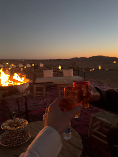 Read moreWij verbleven als koppel in april 2025 bij Soleil Camp en wij hadden een super ervaring! Wij werden heel vriendelijk ontvangen, en kregen meteen een welkomstthee met lekker koekjes. Wij waren maar met 2 andere gastengroepen in het verblijf. Het was erg rustig, wat het ook aangenaam maakte. De ophaling werd ook heel goed geregeld, je kan ofwel kiezen om per kameel naar het camp te gaan of via de 4 x 4 auto. Wij verkozen de 4 x 4 auto en vonden dit ideaal, op een 20-tal minuten waren wij in het camp aangekomen.