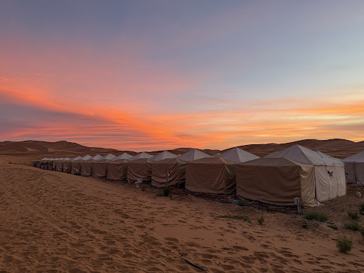 Read moreNous avons passé un super séjour au Yakout Luxury Camp (mais ce fut trop court)! Un lieu magnifique au Nord de l'erg Chebbi (donc éloigné de Merzouga) et au calme. Dormir en tente dans le désert n’étant plus autorisé, la localisation du camp nous a tout de même permis de dormir au pied des dunes et dans une tente (mais pour ceux qui le souhaitent, il y a aussi de très jolis logements en dur). L’accueil d’Omar (d’une très grande gentillesse et disponibilité ; nb : il parle plusieurs langues) et de son équipe a été formidable. Diner (en présence d’un groupe de musique Gnawa) et petit déjeuner délicieux et copieux. La balade à dos de dromadaire au milieu de l’erg pour admirer le coucher de soleil a enchanté toute la famille. Nous sommes particulièrement reconnaissants envers Slimane qui nous a guidé dans les dunes et pour son sourire chaleureux. Ce bref passage restera, pour sûr, dans...
