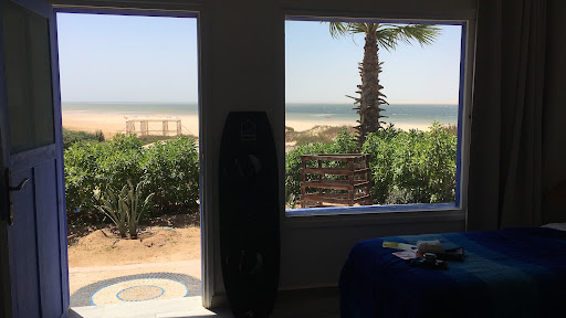 Thought I'd try a different venue for the annual pilgrimage to Morocco for kite foiling fun and stumbled into this gem of a place at the end of the peninsula... directly opposite where I have attempted to foil on the previous 2 year's trip to the region. Attitude has a positive feeling about the place, and far more focused on teaching than other resorts I have been to. As a consequence, the middle of the beach is saved for them ( inherently sensible and fair) with free kiting down wind to them and winging/windsurfing upwind to the north. As a kite boiler, there's an element of being a bit of a pariah, where you don't belong to either gang and rig up with the kiters, but then have to get your board from the wing foiling section. Whilst it's a first world problem, and there's a quad bike trailer combo to take it to the water, it did make me feel a little excluded. Fortunately however, the general feel of the resort is cohesive and I was adopted by the wing foilers.... which was nice. The accommodation is clean, tidy and comfortable. The shower can be toasty warm, but can also be a little tepid depending on time of day and usage... which is to be expected.