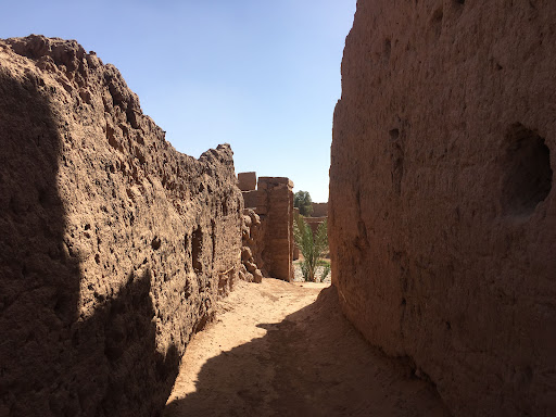 Le vieux village, si proche est silencieux. Enfoui dans ces murs faits d’argile et de terre couleur sable 800 personnes vivent là. J’ai envie d’aller me perdre dans ces rues étroites et sombres et d’en ressentir l’atmosphère sans déranger la vie de ses habitants. Nous aurons la grande chance de faire une visite discrète avec comme guide le frère d’Ali. Il nous conduira à travers quelques rues et quelques maisons inhabitées du Ksar…