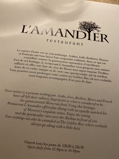 We stayed at the L’Amandier for 3 nights at the end of November. I cannot think of a more ideal place for those seeking an intimate and adventurous setting. It’s is a great place for couples or better yet, groups of couples / friends who will feel like the place is their own. ||First, the location. With stunning views of the High Atlas Mountains, you cannot get tired of staring from your window, the dining room or from the pool / deck area - it’s a postcard perspective and then some. ||Only 90 minutes - maybe less - from Marrakech airport, it’s an easy trip, aside from a couple of the obligatory mountain roads which aren’t bad as mtn roads go. While secluded in nature, L’Amandier has several things within close proximity: Domaine La Roseraie hamman / spa (a must visit), some cool villages that wind around the property so you see kids going and coming from school, local restaurants and most importantly — plenty of incredible hiking that you can do by foot from the very confines of the property. Once there, you do not need your own car - especially if nature is your thing. ||The service. The General Manager Aidan was highly responsive and helpful from the get go. We were lucky to be at L’Amandier during a quiet period in late November. Even so, Aidan and his team didn’t miss a beat. The staff are more than happy to make very good drinks, play the drums with you or just have a nice and easy conversation. They even have very good first aid chops. We left with them feeling like friends. ||The staff did have competition in one area - the food. Absolutely first rate: fresh (vegetables picked daily from their own garden), innovative and healthy. We had eaten all over Morocco and their menu was second to none. And it came at a reasonable price. Sitting by the fireplace eating breakfast and dinner each day / night was a total delight. We also met and chatted quite a bit with the owner Anwar who is a fascinating guy and makes you feel right at home. Right off the bat, he recommended the same hike that he had done the day we arrived. That too did not disappoint. ||Each of the rooms (7 or so in all) are comfortably sized and overlook the Atlas mountains. They are simple in decor yet well appointed and frankly just what you would want in the middle of nature. The bed was very comfortable and the fire place is another first rate touch - the staff sets it up for you each night so you can watch the fire right from your bed - bingo. The shower is technically in the room itself which could be a bit awkward if you’re not staying with a “close” one - it didn’t bother us a bit and of course is quite common in certain properties. ||The dining area / living room is wide open, very stylish in an authentic Moroccan way and it also offers the view that just doesn’t get old. The pool area is spectacular and quite big - ideal for laps or just soaking up the sun (there are umbrelllas if you just want the panoramas but not the rays). ||If you stay at L’Amandier, it’s essential to hike the area. There are “trails” everywhere - best shown by a local guide which you can hire, or the hotel can do it directly for you at an additional cost. We had great guides and mild weather. ||In summary, L’Amandier is highly recommended for any trip to Morocco - especially if you’re tired of urban chaos and want a break from it all. Or you just want to be looked after for a few days in a picturesque and...