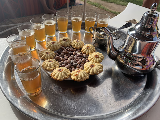 We ended up here somewhat unexpectedly when my mother suffered a bad injury on our trip and had to be off her feet for a few days. The charming staff were incredibly helpful and accommodating. The food was excellent, all organic local fare, with plenty of fruits and vegetables grown onsite, homemade jams and so on, served in a cozy and casual dining room. There is also alcohol available to purchase if you need it (not common in Morocco. And, as elsewhere in the country, drinking water is charged by the bottle).