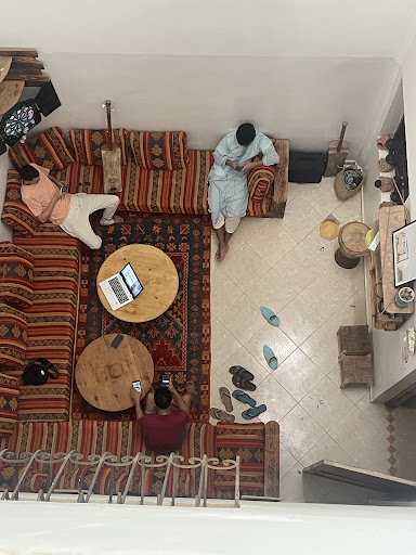 The vibe in the hostel is chill, the people are open and easy to talk to, and the atmosphere is just warm. A lot of nights we cooked together, shared meals, and talked for hours. The interior is simple but beautiful - traditional Moroccan style, really cozy.