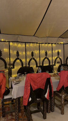 Read moreDihya Desert camp is a gem in the desert, and truly one the highlights of my trip to Morocco!!|We arrived in the evening and were met with open arms, smiles, warmth, and beautiful music. The location is stunning, with awe inspiring dunes and sky forever! And, unlike other camp locations, there is not another camp in sight. Every detail has been considered- from spacious accommodations with every luxurious comfort, glowing lanterns along the pathways, to incredible and abundant meals! In the morning you step outside to such breathtaking beauty and a real sense of infinite space and serenity. The light from sunrise to sunset as it travels across the dunes is like nothing I have seen before! And to top it all off, we were treated to amazing music under starry nights by the fire each night. Absolutely magical! And made more so because of our beautiful hosts, each so generous, caring and engaging. They laughed with us, explored with us, took us on camel rides and were there if we needed anything at all. They're all wonderful!| Dihya desert camp is a beautiful dream...