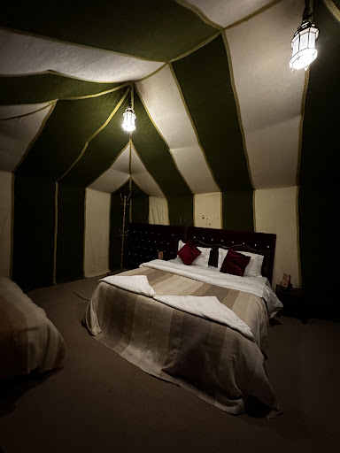 Read moreNo suelo dar 5 estrellas, pero sin duda este camp, las merece, He viajado hasta la duna de erg chebbi en moto con mi nieta, 14 años, reservando dos noches . La primera y agradable sorpresa , un día antes de mi llegada te envían la ubicación de la kasbah donde dejar la moto. El día de la llegada hablo con youanes (gerente) indicando que me retrasare; su respuesta "no te preocupes te esperamos hasta la hora que llegues" para llevarnos al camp en todo terreno, por cierto incluido en el precio, el resto de camp no lo incluyen. (50 euros ahorrados), primera y notable diferencia. La segunda diferencia sobre el resto de camp, la ubicacion; entre dos dunas donde ni ves, ni oyes a los inquilinos de otros camp. La tercera y para mi más importante, el recibimiento, la amabilidad, incluso me atrevo a decir la amistad que en tan solo dos días hemos fraguado con mimun, el responsable del camp, bereber de raza, y creo que con eso está todo dicho, quien nos ha hecho sentir como en casa, hemos comido a nuestra elección, nos ha reservado un quad, para nosotros solos, con un guía extraordinario, hemos cantado, bailado, en extraordinarias noches de cielo estrellado. Y algo que si tienen en común todos los camp, el desierto, auténtica maravilla en marruecos. Ahora con la frialdad de quien ha viajado mucho valoro. Tiendas con baño y agua, caliente y fría, 9.7 sobre 10, ubicación 10 sobre 10, comida 9.7 sobre 10, servicio en general 10 sobre 10. Ahora entendéis porqué ...