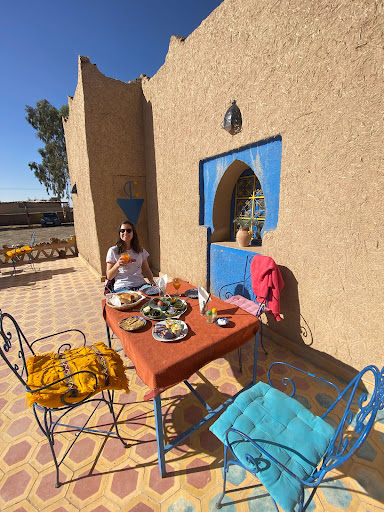 Read moreWhat a brilliant place to stay! Ali is extremely welcoming and helpful, and appears to speak at least 6 languages! We stayed here in the family room for one night - four single beds in one room, with a good bathroom (with separate toilet which is always welcome!). We then arranged one night in the nomad camp and one night camping in the dunes, all through Ali. We are so glad we did. We slept under the stars with the nomads and ate the best couscous in Morocco with them, followed by bread with olive oil and date syrup for breakfast. A fantastic experience, genuinely authentic! The night of camping in the dunes involved an hour's camel ride, and we were deep into the dunes for our beautiful little camp - far from the town unlike many people who stayed in 'camps' right by Merzouga and Hassilabied. We climbed the sand dunes for sunrise, had fun sand boarding, ate an excellent tagine in the camp, and returned to Ali in time for breakfast. I highly recommend arranging your trip to the desert with Ali - it was superb value and we had a...
