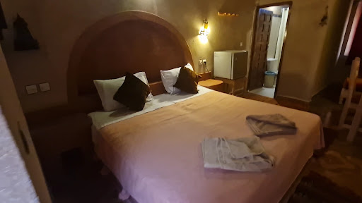 The host, Iahcen, truly went above and beyond to make our time in Merzouga incredible. He arranged private excursions on 4 by 4s and on camels that were reasonably priced and so memorable! Both the breakfast and dinner was fantastic - honestly some of the best food we had in Morocco, and with wonderful service (the host’s young son was so sweet and attentive). And of course, the guesthouse itself was incredibly beautiful. Our room was spacious and comfortable, and the common areas were beautifully decorated with so many areas for sitting and relaxing. We didn’t get around to using the pool, but it looked lovely! Don’t forget to visit the rooftop while you’re there - it’s an incredible view of the desert and oasis.