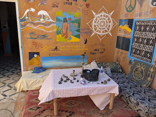 Read moreThis hostel is ok if you are in your early twenties and want to slum as though in a dope commune.||||The mattresses are so worn that the stone bed that they are on is more comfortable. The beds are made with some of the sheets missing, and the bed throws, while being warm, are both dusty and grimey.||||We didn't eat dinner at the hostel, although a communal dinner is cooked each night. The fly infested stale breakfast buffet is served in the waiting area for the hostels desert experience, next to the small grease covered communal kitchen. Tip: best to get up early for the breakfast to avoid eating stale donuts.||||The showers and toilets in the hostel are miserable with broken seats and dodgy locks. They are however well supplied with toilet roll, including the floor of the showers. ||||The walls of the hostel are covered in nice murals presumably done by the grateful youths who have shared a joint and a meal with the hostels friendly staff.||||We left a mostly positive review on hostelworld, which can still be viewed, and in response to this the hostels owner found my girlfriends facebook page and left her an offensive post (screenshotted).||||Do not stop here, do not support bad businesses. Go instead to the wonderful high quality and cheaper Auberge La Source in the...