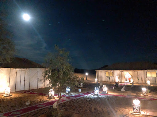 Read moreI recently spent a night at the Zahra Luxury Desert Camp as part of the tour package with the excellent TMD tour company. I am so happy that they chose this accommodation along with the camel sunset ride.|I was very impressed with how organized everything was—every need was met. |I found the camels to be so mello that riding them felt almost zen-ish and the atmosphere conducive to meditation. We disembarked the camels in time to view the most stunning sunsets. I live on the East Coast of the U.S. and I am accustomed to seaside sunsets. I have now “fallen for” the desert and its sunsets!|After taking our photos, we proceeded to the camp on camel—and what a wonderful surprise—it totally meets its billing of “luxury”. The staff was so welcoming; the food was plentiful and delicious; the accommodations were spacious and clean with plenty of warm water . I had a perfect night’s sleep.|Before bedtime, a camp fire was lit and a local Berber group provided the entertainment—a perfect ending to a perfect day. |My only disappointment is that I hadn’t scheduled more time in the desert in my itinerary (which is why I NEED to return!)|If you go to Morocco, be good to yourself and book a camel safari with accommodations at the Zahra Desert Camp—I promise you, you won’t regret it —-as a matter of fact it maybe the most memorable experience...