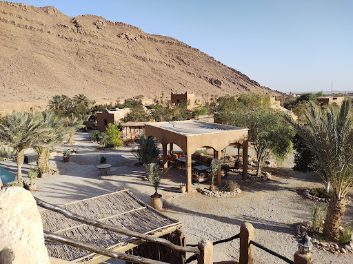 When travelling off the beaten track I prefer to stay outside the main towns if possible. On a recent extended trip through the south of Morocco I had the pleasure of staying at Borj Biramane, located just before entering the oasis village of Icht, at the foot of Jebel Bani, which has the most magnificent colours at sunset.||||Spacious bungalow-style rooms with airconditioning and ensuites, and Berber tents are scattered throughout the desert gardens and wandering pathways. Relaxed atmospheric outdoor cushioned seating areas, a small pool and large terrace, create a superb setting for relaxing. Borj Biramane is very conveniently located for exploring this area of ‘sud maroc’, including neolithic art sites of which there are many, Amtoudi agadirs and gorge. ||||Whilst there we met Paul our wonderful host and many of the friendly staff, including the highly personable and entertaining Abdel. Meals are superb and are served al fresco on the terrace; Alcoholic drinks are available. My friend and I stayed 2 nights and I will return without hesitation. Highly...