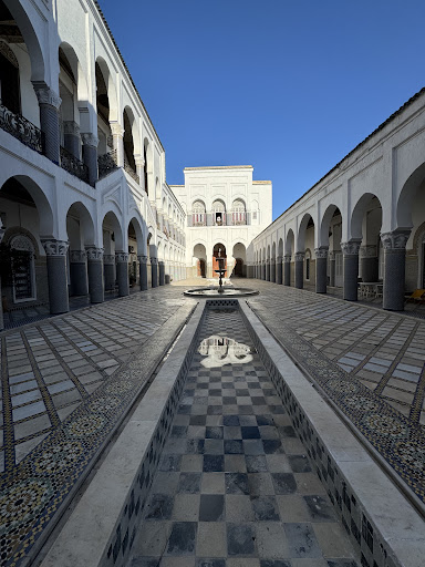 QUE DIRE DU LIEU ? Ce palais est magnifique . Notre hôte avait organisé le transfert aéroport- palais . 30 minutes en voiture sont nécessaires pour regagner notre chambre . C est le fils de Kamal , Adil qui est chargé du transport ( super gentil et toujours prêt a vous renseigner) ( 20 euros le transfert pour nous 2). L arrivée au palais ,: un gardien est là en permanence pour filtrer les allers venues. Il y a aussi des cameras un peu partout mais ce lieu est tres rassurant et fermé donc aucun soucis en ce qui nous concerne . Reçus par Jawad nous comprenons qu il sera la personne qui va nous coatcher pendant nos 10 jours. Il nous fait rentrer dans l enceinte du palais et là nous tombons direct sous le charme du patio. Ce palais est juste trop trop beau. Il est tenu par la famille El Mokri qui met tout en œuvre pour restaurer et embellir ce lieu magique grâce aux locations ... nous avons eu l honneur de pouvoir le visiter et Jawad nous a montrer les chambres toutes plus magnifiques les unes comme les autres . C est un palais des mille et une nuit chargé d'histoire avec du cristal sur les vitres de certaines fenêtres.et des mosaïques à couper le souffle ... Bienvenue chez les El Mokri. Pour compléter un jardin trop trop mimi créé par Kamal et une petite piscine saura vous rafraîchir après des journées de marche dans la médina qui est à 15- 20 minutes à pied. Vous pouvez aussi aller à la porte ZIAT ( 5 minutes de marche ) et prendre les taxis rouges pour une course négociée entre 7 à 10 - 15 dirhams ( 0.70 à 1 euro voir 1 50 la course ) . Ce que nous avons fait plusieurs fois pour économiser la marche puisque la médina est très très grande et il faut beaucoup marcher à l'intérieur pour visiter ... On s'y promène, on s'y perd, on s'y retrouve et on la découvre encore plus ....