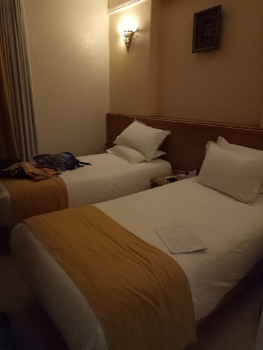 Read moreStayed at this hotel as part of a tour of Morocco for 2 nights and my room was on the 2nd floor.||All looked okay but the bathroom door couldn't be opened properly as the bathroom was so small it hit the sink. The shower head was in a disgusting state and the water mainly came out the side of it. What looked like a king size bed was actually 2 singles pushed together except the top sheet didn't fit so it was more just draped over and the blanket on top the same so if their had actually been 2 people in the bed they would of been fighting over the bed clothes. The noise from outside at night was still loud despite earplugs.||Every time I came in/out the room there was a trolley outside with leftover food I assume from someone's room service, morning & night - not at all appealing.||The WiFi well a different login depending on what floor you happened to be on & then it usually didn't work anyway.||Breakfast was ok, on the 2nd morning I arrived as the restaurant opened and nothing was ready.||We did consider having dinner at this hotel but the staff were not very friendly or even much in attendance.||The only good thing to say about this hotel was the view from the restaurant...
