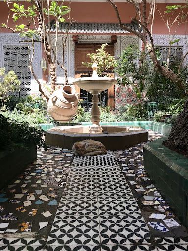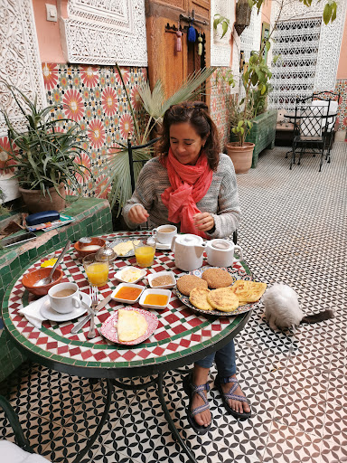 Read moreGoed hotel mits je de goede kamer hebt denk ik. En die had ik. Er lopen veel katten rond en ook een schildpad waar je erg op moet letten wil je hem niet per ongeluk pletten. Er zitten ook parkieten in een kooi en er zijn veel vogels aangetrokken door het kleine fonteintje in het kleine tuintje met de grote palmboom op de eertse binnenplaats.||De tweede binnenplaats is kleiner maar daardoor veel intiemer en rustiger. Je kunt daar onder een sinaasappelboom zitten waar in de middag een zwerm zangvogeltjes in neerstrijkt. Ook de Azaan (oproep tot het gebed, 5x per dag) vanaf de minaret van de centrale moskee is er goed te horen. Omdat op deze binnenplaats maar enkele kamers zijn is de privacy ook veel groter.||Het onbijt is goed maar elke dag hetzelfde. Als je de Marokkaanse pannekoeken niet wilt kan je ook een Frans ontbijt krijgen. Het personeel is aardig maar wat ik heel vervelend vond was dat ze willen dat je uiterlijk middernacht binnen bent. Het argument is dat de stad of de stegen rondom het hotel te onveilig zouden zijn. Ik heb tot half twee rond gezworven op jacht naar avontuur en er is niets onveilig aan. De man (verder heel vriendelijk) was nog net niet laaiend toen ik terug kwam (wist ik veel, het is per slot een hotel). Ik zou het ook niet hebben gepikt maar heb er later wel onbewust of bewust rekening mee gehouden. Ze willen gewoon vroeg slapen. Op de straat kan je ook afknappen (garage's en autoreparatie bedrijven). Maar de sfeer van het hotel heeft veel van een Frans Mediterraan idee in Marokko en is heel prettig. Ook de ligging is perfect. Als je wilt zwemmen en even in een Franse enclave wilt zitten dan kan dat op slechts 5 minuten lopen van het hotel in Club Med voor ca. €33 per dag (van 10.30 tot 17.00 uur) inckusief onbeperkt eten en drinken (ook de alkohol is gratis en je kunt als je wilt jezelf helemaal lamzuipen, ongelofelijk). Mijn kamer was trouwens brandschoon en lichtgroen, wit en geel geschilderd. Het 'vieze' kleedje op de vloer (dat is immers niet schoon te houden) heb ik meteen bij aankomst weg laten halen. Dat was natuurlijk geen probleem. Ook heb ik alle kapotte lampen laten vervangen (4 stuks). ook geen probleem. Het kamertje werd er meteen eenstuk frisser door. Er is geen tv. De badkamer zag er nieuw uit. Beddegoed en handdoeken ook. Ik liet elke dag een beetje geld achter op het hoofdkussen maar ook zonder dat zullen ze het goed schoon houden al was het maar om de grote kakkerlakken die in de stad rondkruipen zo veel mogelijk buiten de deur te houden of zijn daar de...