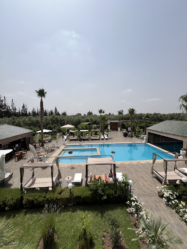 Read moreAbsoluut een aanrader. Het personeel is super vriendelijk, de kamers zijn schoon, het ontbijt is echt enorm uitgebreid en het is heerlijk vertoeven aan het zwembad. Wij zouden hier heel zeker terugkomen!||Ik las in andere reacties over dit hotel dat men wat klaagde over het ontbijt dat steeds hetzelfde is en dat het avond eten steeds hetzelfde is. Daar zijn wij het niet mee eens. Elke ochtend is er toch een kleine variatie in het ontbijt en bovendien krijg je zodanig veel bij het ontbijt dat er sowieso wel zaken moeten bijzitten die je lekker vindt. Wat het avondeten betreft werken ze met een menukaart, wij vonden dat er meer dan genoeg keuze was op de kaart zodat je eigenlijk elke avond wel iets anders kon nemen. Voor het avondeten moet je rekenen op ongeveer 20 a 25€ pp voor een hoofdgerecht. Er zijn ook goedkopere opties. Je bent ook niet verplicht om daar te eten. ||In andere reacties las ik ook dat de muziek soms luid staat aan het zwembad. Wij hebben dat 1 dag op de 5 gehad, maar wij vinden dat het klagen niet waard. Zouden we bovendien gevraagd hebben om het stiller te zetten dan hadden ze dat zeker gedaan. ||Het ligt een 20minuutjes van de medina verwijderd, maar dat was voor ons een bewuste keuze, het is hier heerlijk rustig. Wil je toch naar het centrum kan dat heel makkelijk met de taxi. Via het hotel kan je een taxi naar het centrum van Marrakech bestellen voor 200dirham en een taxi om je naar de luchthaven te brengen kost je 300 dirham. ||Ik wil nog eens benadrukken hoe vriendelijk het personeel is en dat het volgens ons wel echt de moeite is om hier een of enkele overnachting(en) te boeken. Ze zijn trouwens super flexibel ivm wanneer je het ontbijt ‘s...