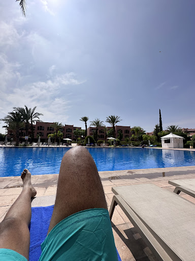 Read moreThe hotel is very far from everything, so a taxi is required to get to restaurants or any activity. In terms of location, it gets one star!!!! The property is beautiful and well-decorated. Despite its potential as a 24-hour facility, the gym could have been better. It was dirty and poorly maintained, with no fresh towels, empty tissue boxes, or stocked-up water. The gym floor had noticeable dust, especially when the sun was shining in the day. The equipment, though functional, could use some oiling and maintenance, and the garbage bins were full. As I write this review, I sit in my hotel room on our last evening. The wind is blowing strongly outside, and even though the windows are closed, the wind penetrates the room and blows the curtains. I could hear a baby crying in the room next door, which was annoying if you come on holiday to rest. You can hear everything from the next-door rooms. The bathroom rail for hanging towels is broken. The toilet wasn't flushing in the previous room, and the mattress cover needed to be longer. Since the mattress protection cover is more like a duvet, it was uncomfortable to sleep on. The sheet covering the mattress is not suitable as it cannot be tucked neatly - so you might end up with the sheet moving through the night. The pillows are enormous. They are not for sleeping on. I asked the reception desk for smaller pillows, and this was never fulfilled. When booking, we asked for a double bed, but they gave us a room with two singles put together, which made our first night uncomfortable. We booked a sauna and had to pay for a 30-minute time slot. These things should be included in the stay. It needs to be clarified when making the booking. When we went to the sauna, the receptionist took us there and left. She came into the sauna an hour later, telling us that we were overtime. I didn't have my watch on, and it felt like we had done something wrong with how the receptionist communicated with us. When we went to pay, I said I needed to collect my wallet from my room as I didn't bring it to the sauna. The lady told me my partner needed to stay while I got my wallet. That was the final straw. I was staying in a 5-star hotel, and they didn't trust me to go and get my wallet. I was angry at her attitude and the hotel's lack of responsibility for not informing us that our time was up in the sauna. Breakfast is not good at all. The food is not labelled, and it stays on the hot plates and gets very dry and nothing is special.The toast machine needs to be fixed. Lunch at this restaurant it's the same. Some dishes needed to be more varied and less dry. The tagines were delicious, but how many would you like to eat? If you venture into Marrakech, you'll find much better quality food for way less, and I am talking excellent food! One waiter at the hotel stood out from everyone: Safieddine. He was kind, friendly, attentive, and just a joy to see him every day. I think the hotel staff could learn from Safieddine's attention to detail. From uncomfortable beds, excessive noise and a lack of attention to detail, to poor breakfast options, my stay was not what I expected - given the reviews I had read before booking online.I experienced this when I asked for a new room because the toilet was not functioning and the two single beds were uncomfortable, it felt like they were burdened by there reaction. No apology "we are dso sorry for this inconvinience". During check-out, I informed the staff that we didn't use anything from the mini-bar. However, I found it unacceptable that they made us wait until someone checked before believing us. The focus on building client relationships was not a priorioty as far as I am concerned! In Morocco you get a sense that people on the streets are hussling to survive and I love that capacity when people just do what they need to do to survive. I got this energy also from the personel - The hotel is designed to make money on every extra...