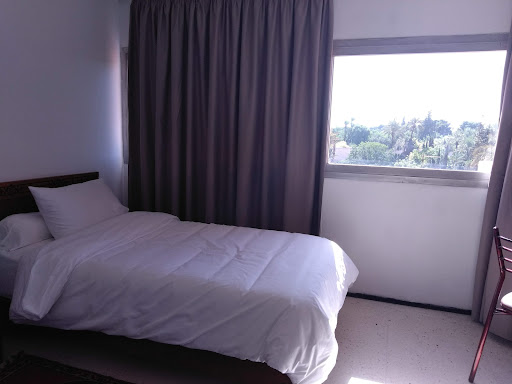 Read moreI want to be as fair as possible with my review as the people who work here truly try their best and are friendly. |We arrived and I was very disappointed in our room on the 4th floor. They allocated us a better room the following morning after I had complained. I have attached photos of our first room and then the second. |The hotel has plus and minus points first of all. |There are elements of the hotel which are quite striking. The entrance, the tiles on the wall, the seating etc. However the hotel is a step back in time, it must've been quite the place in the 60s/70s! The carpets are so dirty, it's a shame, It would be better with no carpet at all. |The rooms are budget rooms, near the centre of the city and close to Gueliz, the more modern area. There is a Carrefour around the corner, it's a plus point! Close to nice restaurants too! |The rooms are plain but have what you would need if you are not too fussy! |Beds are clean and reasonable. |Air con which is a bit noisy. Shower was so hot and powerful though aesthetically not that nice to look at, dated and a bit rusty..BUT works well!! |No key for safety deposit box. A few metal hangers in the wardrobe. |The staff try their best here. They smile and help as much as they can. |The breakfast won't cater for all. It's stodgy and fattening. No fruit or yoghurt options. Would be nice if you would change it sometimes. Set menu, so you get what you are given. Pastries are nice.|Important point: WiFi is only available near the reception. It was reachable sometimes in our room on the first floor because we were near reception. There are places to chill down stairs. |Pool seems nice but was too cold. Soft drinks and tea available...