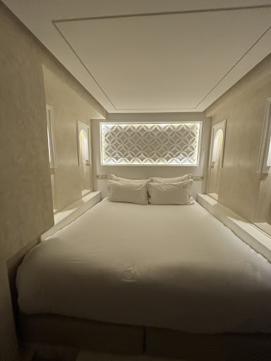 The riad is beautiful: wonderfully and modernly renovated, maintaining the Moroccan details and vibes. The room was spacious, with a huge and very comfortable bed. We were pleasantly surprised to find two complimentary bottles of water, a coffee machine with a couple of capsules, and some space to hang clothes. The shower is big, and there's a hairdryer and complimentary shampoo/shower gel. The riad has a terrace where you can enjoy breakfast or just relax with a wonderful view of the kasbah and the mosque. The staff is amazing: they arranged a pick-up at the airport, and when we got to the center, Hassan was waiting for us and brought us to the riad. They can arrange dinner or lunch at the riad if you need (which we didn't have). Breakfast is freshly made every morning. We enjoyed their hammam and had a massage (Fatima has golden hands). One night, we were running late to our restaurant reservation. They helped call the restaurant, and Hassan helped us find an ATM and grab a taxi. It was a great choice! Inshallah, we'll get there again.