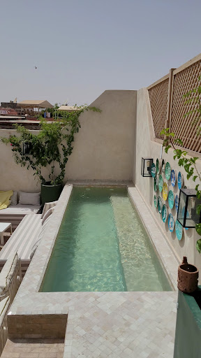 If you're looking for something special for your stay in Marrakesh I'd sincerely recommend you Maison Riad Beryll. It's a perfect example of a new level of riads. Modern, stylish, and perfectly equipped with great attention to details this hotel still keeps the charm of traditional moroccan riads. Once you step in you feel freshness and delicate aroma. By the way don't hesitate to ask the hosts to meet you at Bab Doukkala (the nearest parking stop), Google maps is not reliable in souks of Marrakesh. Our host Mohammad led us to the hotel, explained how to navigate in medina and gave many useful tips for exploring the city. After that we were kindly welcomed by the traditional moroccan mint tea and pastries 😋 Hotel rooms in Maison riad Beryll doesn't have numbers, they are called after the female names. Our room was called Louisa. And I can absolutely recommend it for you! We were positively surprised by its size and comfort. As I've already mentioned the hotel is designed with the love and attention to every little detail. Our room had a huge wardrobe and a bathroom with two separate sinks (which is very useful when you need to get ready in a short time). On the rooftop you can find a small refreshing pool and a bar, so you can escape the heat of the day there (even though during our stay it was +46° in Marrakesh, we had a pleasant feeling of coolness in our lovely riad). The breakfast was also served on the terrace by the pool. And here we must thank chef Bushra for the delicious dishes she prepared for us. We loved homemade jogurt with the fruit salad, pancakes and pastries, eggs that could be prepared any way we wanted, set of jam and honey jars, very good coffee, moroccan mint tea and the tastiest freshly squeezed orange juice.