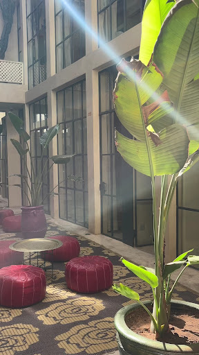 We spent one week there, trying to balance some remote working hours with quality time exploring the city. Miostello was the perfect place to make that possible. Downstairs, there is a large chill room with sofas, tables, chairs, and armchairs, allowing you to choose how comfortable you want to be while working or chatting. There is great attention to cleanliness, the rooms are refreshed every day, and the common areas are always spotless. The breakfast is plentiful. The staff is incredibly friendly, and we felt at home. We had the pleasure of meeting the owner of Miostello, who had come for a week to do some restyling of the spaces and rooms on the upper floor. He was very kind and welcoming :) The location of Miostello is truly strategic, far from the crazy chaos of Marrakech, which can be reached in only 15-20 minutes walking. (I loved to hear birds singing in the early morning and no cars noises). The area around Miostello has all the necessary services, shops and nice local food street places for the most adventurous bellies :) We avoided taxis and took only public transports, Miostello is well connected also to the airport (you can take the bus and step out at Bab doukkala bus station/just few mins walking to Miostello).