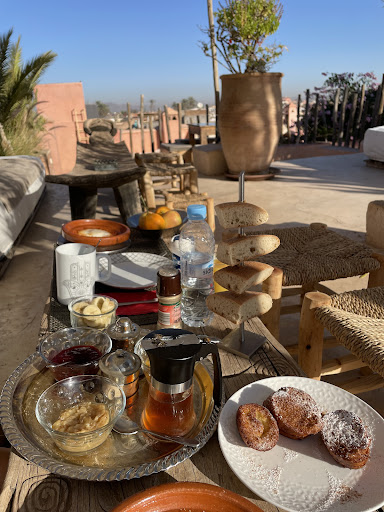 We were delighted and so happy with our choice of accommodation. We wanted our first trip to Africa to be authentic and this Riad was one of the best choices we made. It is NOT a standard hotel like we usually stay and I loved the authenticity and charm as well as the obvious pride the owner and staff took in caring for this lovely property. |The staff was the shining star of our stay. The manager, Ahmed, arranged everything we wanted. He arranged our pickup at the airport as well as someone to meet us and transfer our bags to the Riad upon arrival in the old town. It was a small walk through the charming old streets late at night so we were very glad of the help. He arranged two tours for us, a desert adventure and a tour of the highlights of the city andthe souq by tuck tuck. We had him set up a visit to the on site Hamman and a massage (both services done by two lovely sisters who did a GREAT job) as well as dinner on two nights in the Riad and a reservations at a nearby restaurant. The Riad is perfectly located to explore Marrakech. The rooms are lovely and authentic art work of northern Africa was everywhere. The bed was comfy, the AC worked well, bathroom amenities were good and the whole Riad was well maintained and kept very clean. This was accomplished by three lovely ladies Karima, Fatima and Khallka. Dont be suprised if they bring you a delicious glass of iced tea when you are at the pool for a dip. The breakfast was cooked by their chef, Aicho, who also made our dinners. She is a great cook and her french toast was the hit of our morning. She kindly instructed me on her technique so I could delight my grand children when I got home. Last but not least was Abdullah. He is the night manager and helped us so much during our stay. His lovely smile and gracious service were heart felt and we felt so valued by all of the staff during our stay. I recommend Riad 144 and hope to visit...