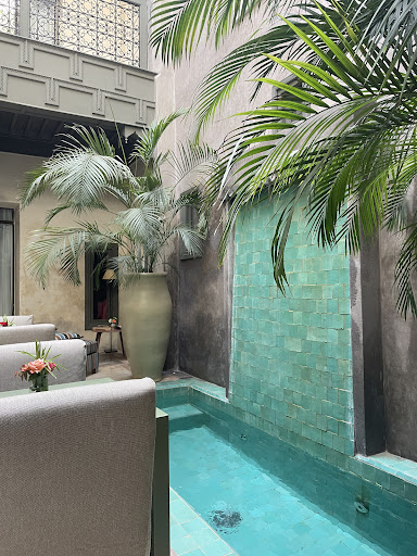 Read moreThe staff who work here are all incredibly friendly and helpful. They helped give us directions of places we wanted to go, made reservations for meals and spa treatments, and were always around to help out in general. The place itself is just as nice (though tucked away in a very twisty alleyway, that, if arriving at night which we did, seems a little dodgy - but it’s not!! It’s actually based in a very homely, familiar area where people all seem to know each other). It’s hard to find, but they came out to meet us where our taxi dropped us off to ensure we found our way without trouble. The surrounding area is only a short walk from the main attractions (souks, mosques, gardens etc.) and gives off a very secure impression. We walked almost everywhere, with the exception of some gardens outside the city walls). They serve breakfast as and when you are woken up (an array of food, that even I - a very picky eater - found enough to eat) by gentle bird songs. There’s a fire that you can sit by, which is very homey, and a rooftop terrace with plenty of seating space, and a jacuzzi. I ordered a drink from downstairs and they even bought it up for me. The rooms themselves are relatively basic, with just the essentials, but they’re also very aesthetically pleasing. One thing I feel necessary to mention is that the baths they have here are so massive and amazing. Just honestly. The best baths. They make your beds, give you olives and nuts with every drink you order, offer advice on where to eat and what to visit. They go beyond what is necessary to make your visit to Marrakesh really very wonderful. Wouldn’t hesitate to recommend to friends visiting, and if and when we come back, will...