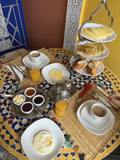 Read moreFirst off, the people who work here are the nicest people i met in Morocco. They were very accommodating and welcoming and it was clear that they wanted to make my stay pleasant. Aside from that, I'm very glad I chose this riad. It's about a 3-minute walk from the square, which is close enough but not too close, as it gets very hectic and noisy, especially in the evening and at night. This riad was far enough away that it wasn't disruptive while at the hotel. The staff provided a delicious breakfast on the rooftop patio every morning and one night they even offered me a free dinner, which could've fed a family. I felt bad not finishing it, but I was truly stuffed! The rooms are a bit plain and on the smaller side, but it wasn't really a problem for me. The rooms have a safe and there's a shared...