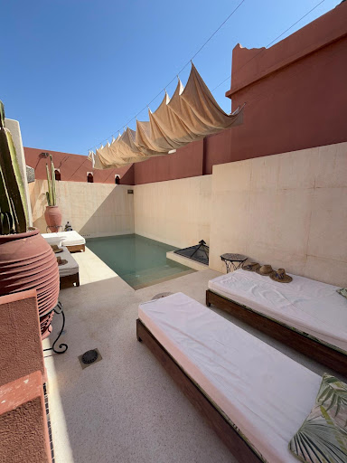 Read moreWe had a great stay at Riad Kaiss. We booked a suite to have our own outside space which was lovely with sun loungers and a cabana for shade. It was slightly overlooked from the roof terrace in some parts but also had areas not overlooked. Also metal outside furniture did get hot in 45 degree sun. The Riad is very well located to the south of the Medena a 5 or 6 minute walk from Place Mellah where we were dropped off by our transfer. On our arrival we were met by GiGi and invited to the inner courtyard for traditional Moroccan tea and snacks, a lovely setting among trees with cheeping birds. After this GIGI spend time with us going through local information such as places to go, good restaurants and some very good tips for our stay such as how much to expect to pay for taxis and best times to visit the main square and souks, she also gave us a local map. A tip envelope for the end of our stay was given to us. There was absolutely no pressure to give any tip but it was explained that if we felt we would like to leave something any tips would be shared equally between all the staff. This was a fantastic idea as there were staff who we would see less often (or not at all) but who would have contributed to our great experience. It also took away any awkwardness we might feel about when and where to tip. The Riad is really nice and I would recommend it as a place to stay but the thing that really stood out were the wonderful staff who were all very friendly and helpful, nothing was too much trouble. A special mention also has to go to Nawol who was often on reception. She always had a lovely smile and greeting and showed a genuine interest in us, how we were enjoying our stay and would often ask us how our trips or meals had been. Service was exceptional, we even received a call to our room on the morning of a very early excursion we had booked, not through the Riad, but had mentioned we were doing. This was to check that we were up if we needed anything. Note to the management and owner. You Riad is lovely but the true strength is your staff, too many to mention individually but all of them were great. Always helpful and friendly, nothing too much trouble and remembering any needs we had. We had asked for ice in our room a couple of times to cool our drinks, after this Ice buckets were offered to us if we were in reception with a smile and a...