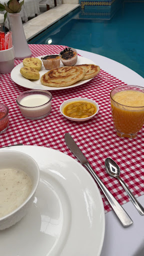 Read moreAmazing looking hotel, boutique feel and look, the traditional elements in lobby area are just fantastic. The greeting and check in is unorthodox for western travelers; they sit you in the nice lobby area beside the pool, serve hot beverages and treats, and you wait for the guest services to come and welcome you. They did take my passport the moment I arrived before asking to be seated which surprised me. The person goes through a lot of details.||The room was super spacious, and very traditional. Rose petals laid in different locations to welcome you. Even a bowl of fruits were there for you to enjoy! There is no TV, so have some music on hand if it feels too quiet. ||This hotel is located in the old city of Marrakech, so the building is old and not very sound proof. There was an interesting thick pad which was designed to fit the window and they asked me if I wanted it super quiet, I should put that at night to block the noise and light; although Marrakech is very noisy place due to thousands of motorcycles which wander around the city from very early morning to late. So have a good pair of earplugs on hand. ||The bed was comfortable. The cover was too hot for summer time. The AC works really well. Shower and bathroom was functioning well and well maintained.||The breakfast was great: very individualized, traditional choices, including delicious Moroccan soups. ||A beautiful swimming pool in the lobby to get yourself wet, although I did not use it, but even sitting beside it was very relaxing. The greens in the lobby was fantastic, and the decors and artwork were very pleasing to look at. ||The location is not too far from old city, 15 minutes walk, but be prepared to navigate through narrow old streets with lots of commute and traffic. Be extra careful with bike drivers. I wish the city somehow control them. ||I want to thank all staff at the hotel, the reception, breakfast and lobby staff. All very friendly, super nice and kind. They made my stay at this hotel very memorable. Thanks again and if I come back again, I may stay at your hotel...