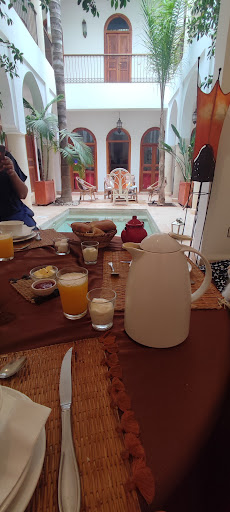 Read moreBeautiful place to stay has a lot of potential. Location is brilliant, a 5 min walk through the bazaar to the Jemaa el fnaa Square. On arrival we were treated with with a moroccan tea, had to wait for a few hours for room to be prepared. Was not the room on balcony we booked but a ground floor room. Rooms were OK...a bit dark needed to leave doors open to get some fresh air in...not sure how this would be on a very hot day....slightly musty smell Breakfast was nice but very limited a yoghurt drink, orange juice and coffee with small pancake with butter and jam, leaving my husband still hungry. The next day another guest who did not like pancake was given a scrambled egg so husband asked for that the next day with the pancake. Evening meal was at 8pm..a tagine which was delicious and very authentic....would be nice if it came with couscous but comes with bread and salad which i was fine with me but no desserts. Abdul and Fatima were very friendly when we did see them. Had a hammam not far from hotel which cost £40 was a very good one recommended by fatima. Booked other excursion ourselves as too expensive when booking from at riad. Overall lovely place just needs a bit of sorting out very homely...