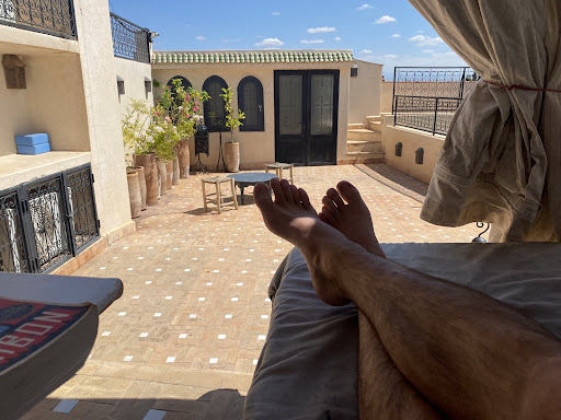 We were originally due to stay here September 2023 but sadly the earthquake hit four days before our arrival and so we rebooked for this September. |I honestly cannot rate this accomodation, its staff, its owners and the food highly enough!!! ||Where to start?? The Road is pretty special… it’s not ultra luxe but it’s very very good, spacious and comfortable. Everything has been thought of and considered. Firstly they have their own app which is brilliant when you are planning your trip but also whilst you are there and you can’t use your mobile wifi then the app allows you to transverse the medina and can use their live map function… so when you get a bit lost (and you will) you can find your way back. ||The rooms - we had The Ebony room with two double beds, one in a mezannine plus a little lounge area and two bathrooms. This was perfect - spacious, well equipped, lovely showers and toiletries supplied plus amazing air conditioning (it was about 98 degrees outside!).||The breakfasts were delicious with fresh bread, fruits, eggs of your choice, pancakes, preserves and juices - served at your leisure wherever you wanted it! So we had it on the roof terrace early one morning when it was cool, and then as brunch another day after a morning out at Jardin Majorelle, and then once in the room. We also enjoyed dinner on our first night - lamb tagine, vegetable tagine, couscous, various salads and veg and tasty fresh breads. It was honestly some of the best food we had in Marrakech. ||Lounge areas, dip pool, are all|Lovely and cool and decorated well. ||Location - perfect as just a 2min walk to the souks, two great restaurants with roof tops just around the corner (Slimana & Le Foundouk) ||The best thing about this place tho?? Without a doubt it’s the friendliness and helpfulness of the staff - all of them but in particular Ali, & Khalid and the lady that does the spa& hammam!! ||The owners and their extended family were also here when we were staying and they couldn’t have been more welcoming and helpful. I think it’s fair to say they play quite a big part in the Anglo-Moroccan society in Marrakech and have been instrumental in bringing this amazing city to the cosmopolitan place it has become.||Ps There is an extremely outdated view and narrative surrounding this city about women being careful. To be completely honest we did not feel at all uncomfortable, We found people very welcoming and accepting and bartering in the souks was|Lots of fun. ||This was a really amazing base for a great trip to...