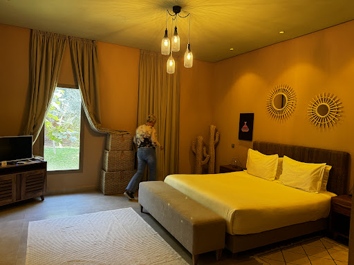 Read moreWe stayed for 3 nights in early December 2019. Positives:||- Peace and quiet, which you simply would not get in any Riad in the centre of Marrakech.|- The pool - although too cold in December, we enjoyed some time by the pool in the sunshine.|- Bar and snacks - not over priced, and nice food|- The hotel dog!|- The taxi service available for dropping in and out of the city - just give 30 minutes notice and you’ll be ready to go, and arrange a good location for pick up. At £8 each way, it’s a good service.|- Room was a nice size, had a heater which was good as it’s not that warm in December.||Negatives:|- Speed - nothing is quick. Breakfast was painfully slow at 45 minutes to an hour.|- Breakfast - very basic and repetitive. We managed for 3 days, any more and I would’ve been bored.|- Professionalism of staff - they have conversations loudly that customers should not hear. I won’t give specifics but if I was easily offended, one telephone conversation I overheard would have ended in a serious complaint.|- Finishing touches - in our room, toilet roll holder was missing - clearly had fallen down, but not replaced and unfinished filler on the wall.||Marrakech city was brilliant and isn’t as overwhelming as I had expected. Plenty of friendly people and at no point did I feel intimidated. Food is amazing and not expensive, if you want to drink alcohol be prepared...